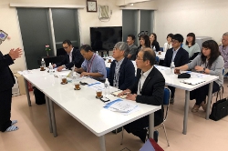 その墨田区議会の福祉保健委員会(広田委員長)所属の議員各位。沖山区議会議長、区役所の大滝福祉保健部長、随行の栗田議会事務局長など錚々たるメンバー10人が行政調査に来訪されました。